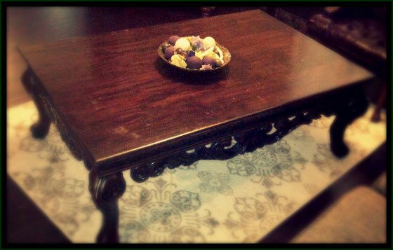 Our next project was creating a coffee table for the living room. I was fortunate enough to come into a table frame but not table top No worries though, the frame of the table was absolutely too gorgeous to pass up!