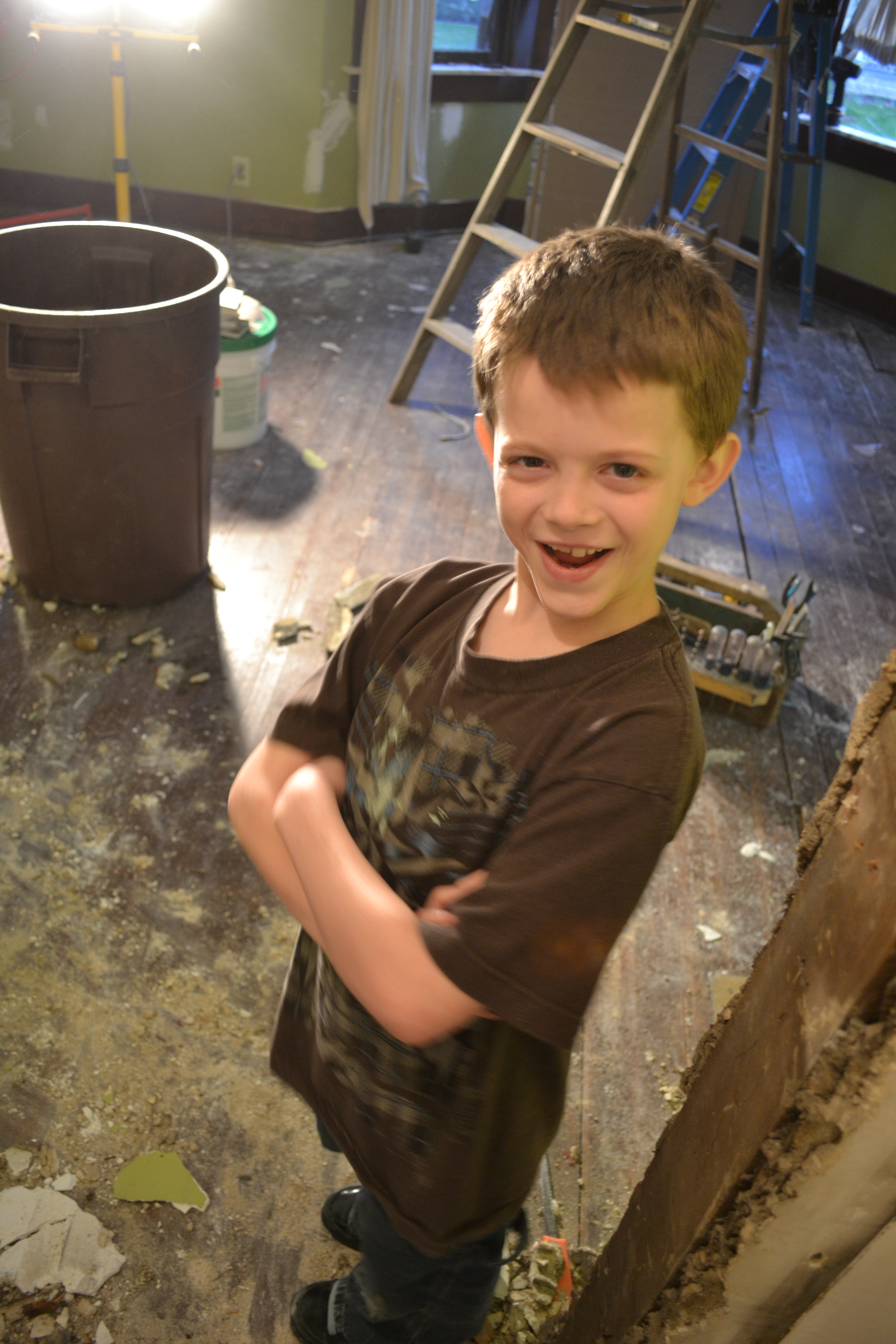 Our friends Phil and Sarah and also Jason (who drove all the way from Indianapolis woo hoo!!!) answered the call to arms and we turned Saturday into a day of destruction. And by destruction I mean that we completely demolished several large burritos at Cebolla’s (mucho buenoooo) and even managed to take down a wall or two! Before all that though, we did make a 3 hour pit stop at the Rave to watch the Hunger Games, which I highly recommend…though the book is way better. It always is. After that, it was time for a quick bite to eat at Cebolla’s to satisfy our favorite out-of-towner’s Mexican cravings and then we were on our way to the house for the grand tour.