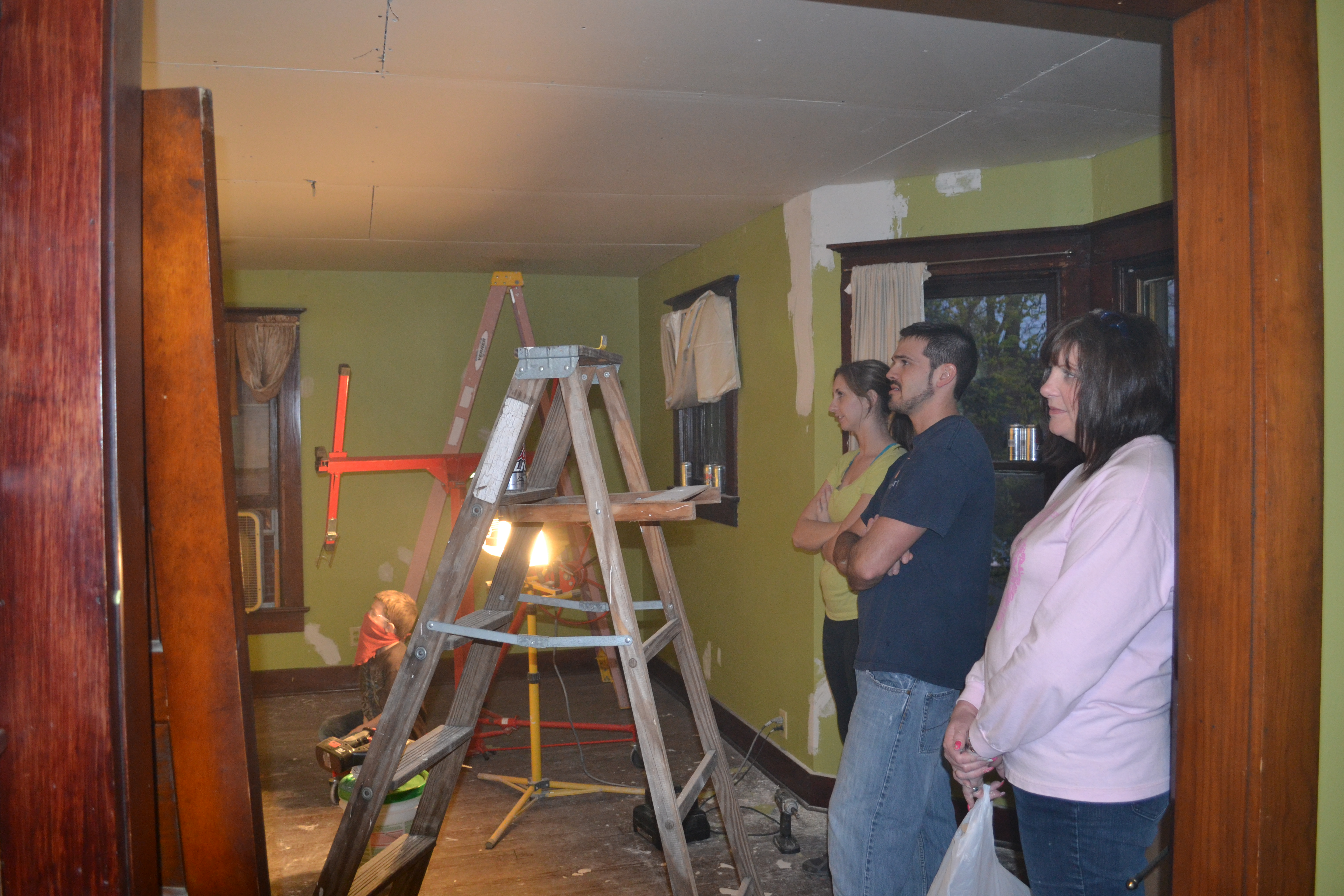 I was a little nervous about showing my friends the house. Whenever I give someone the tour for the first time I find myself saying “This is the bedroom. I know it needs this and this and this and can you believe that they put that over there?! But just wait til we buy this and that. Then it will be fabulous!” I feel like I have to schmooze over the ugly, dirty parts of the house and make everyone see “The Vision ” (cue organ music now). It turns out there was no need for worrying. Everyone responded with enthusiasm. They all loved the house just like we did.