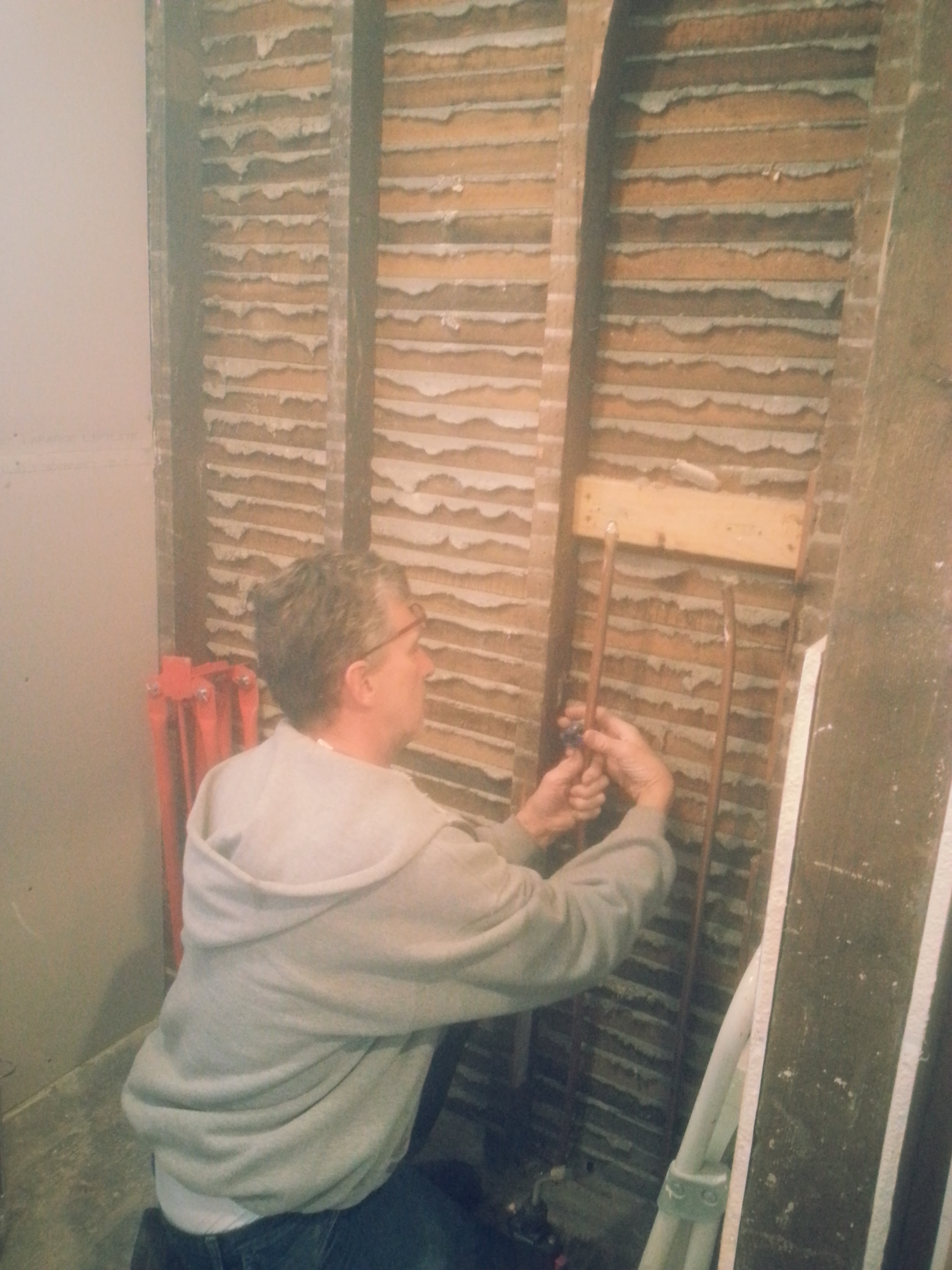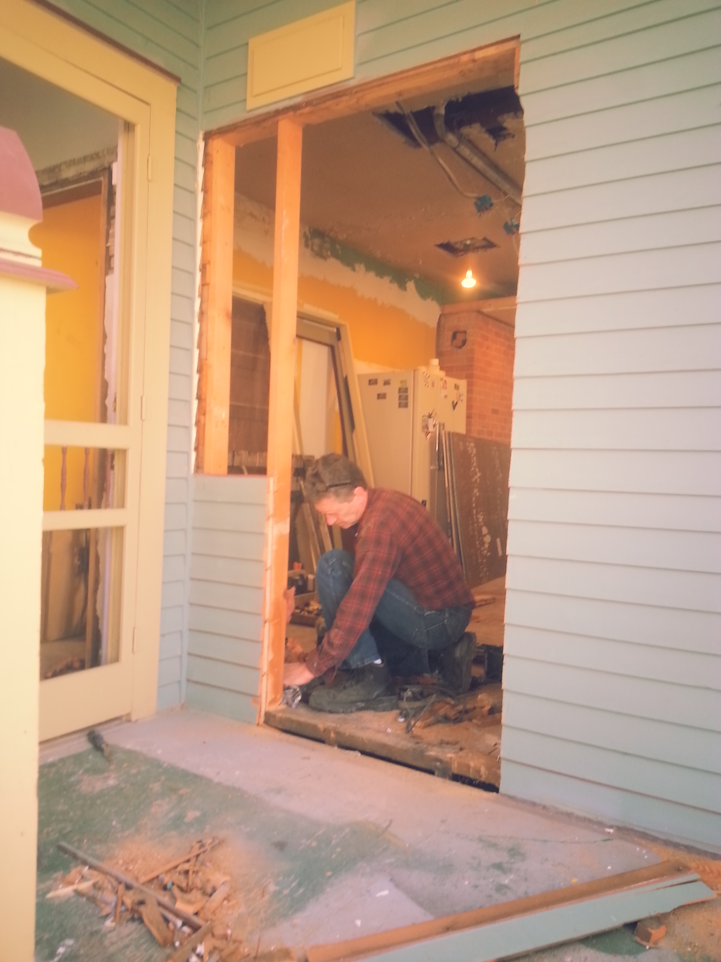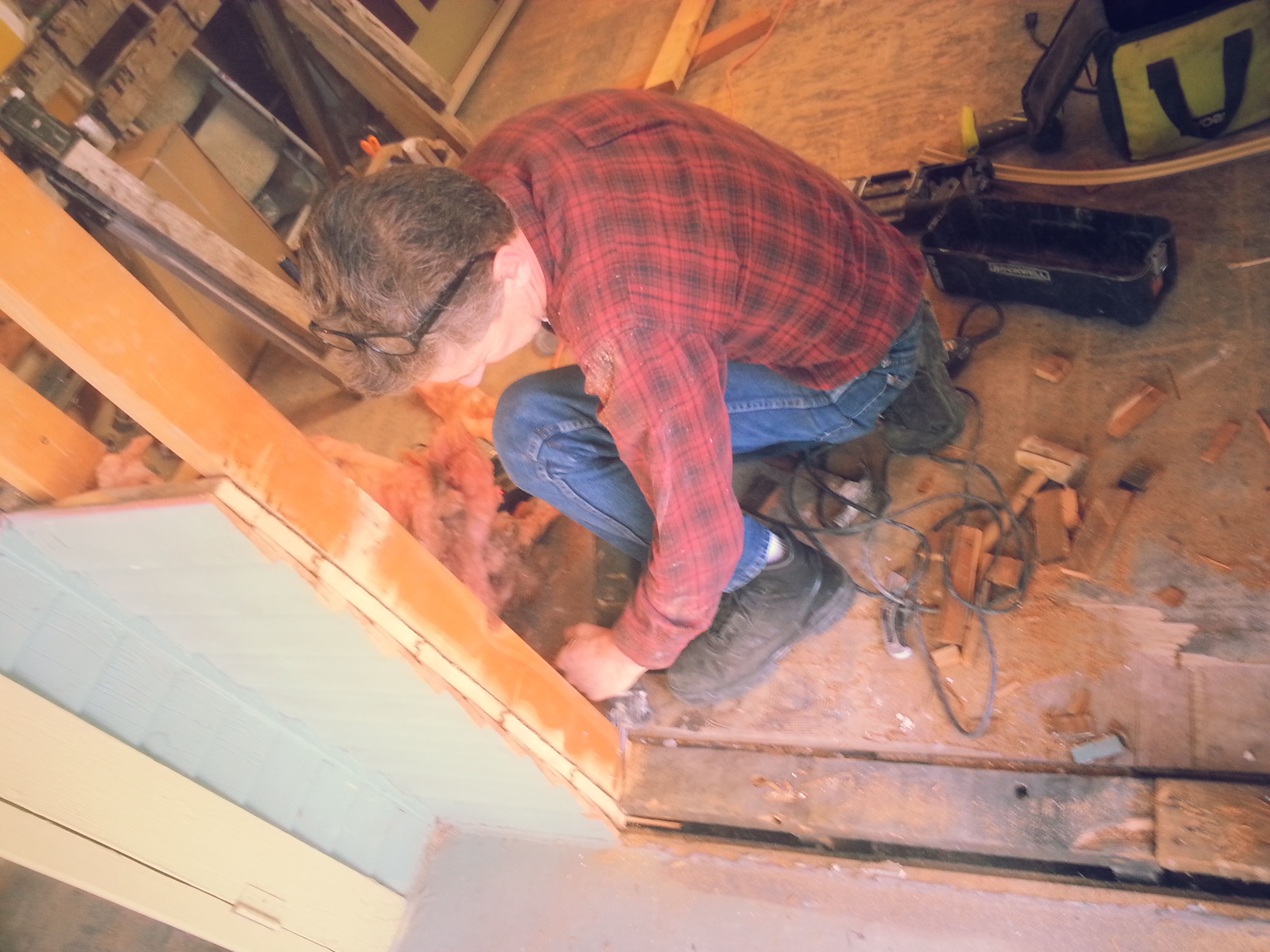 We also had to plan ahead for the rerouting of the heating and cooling vents that would bring warm and cold air into the kitchen. There were 2 vents into the kitchen which had to be moved and turned. We also had to run an entirely new vent into the new bathroom as there was no air flow system into that space.