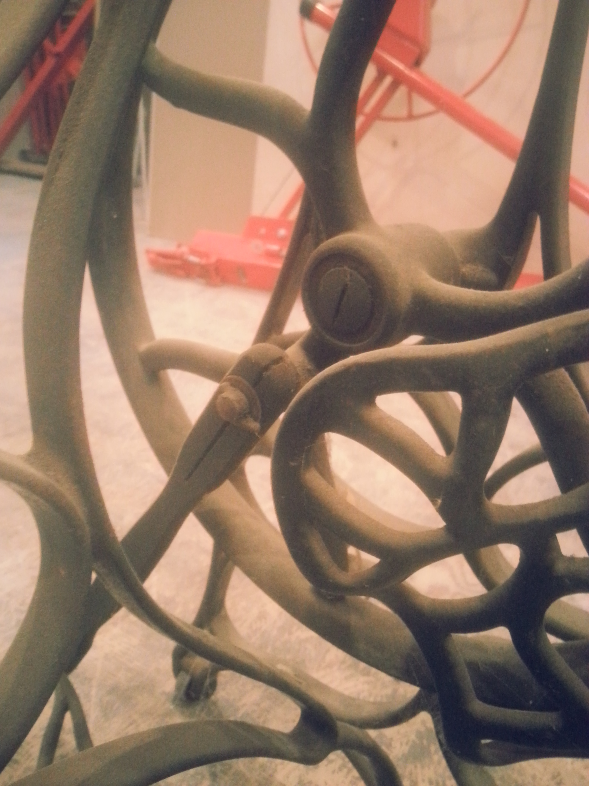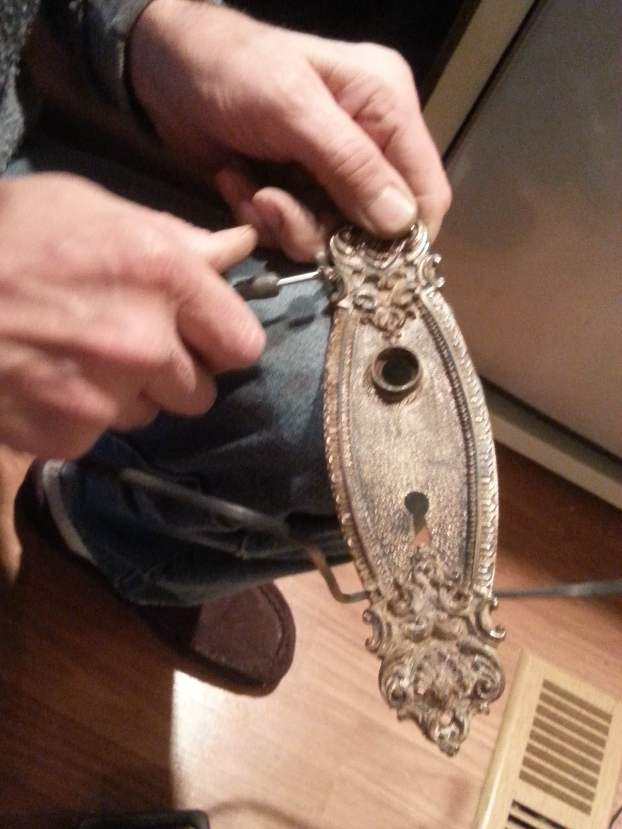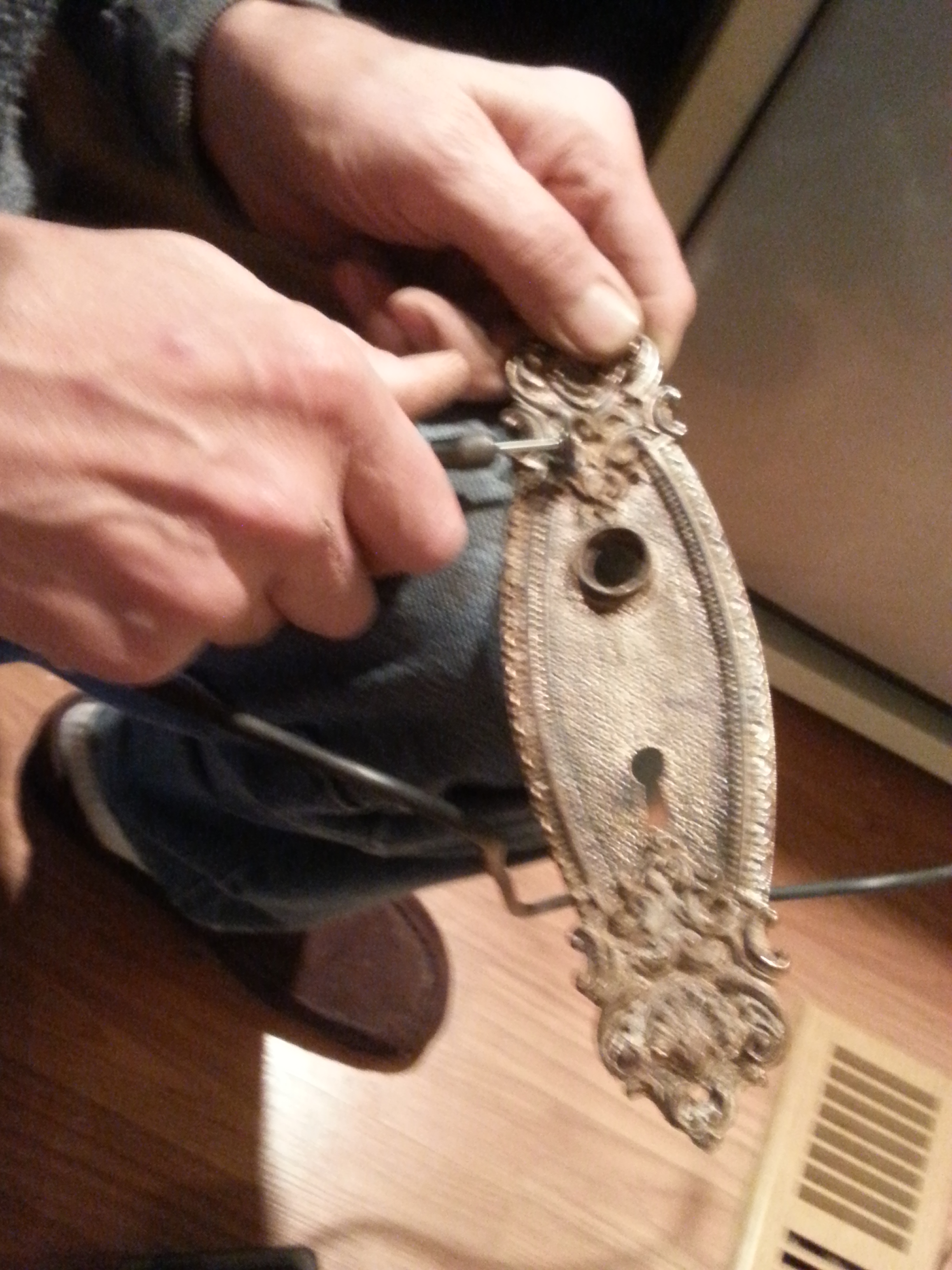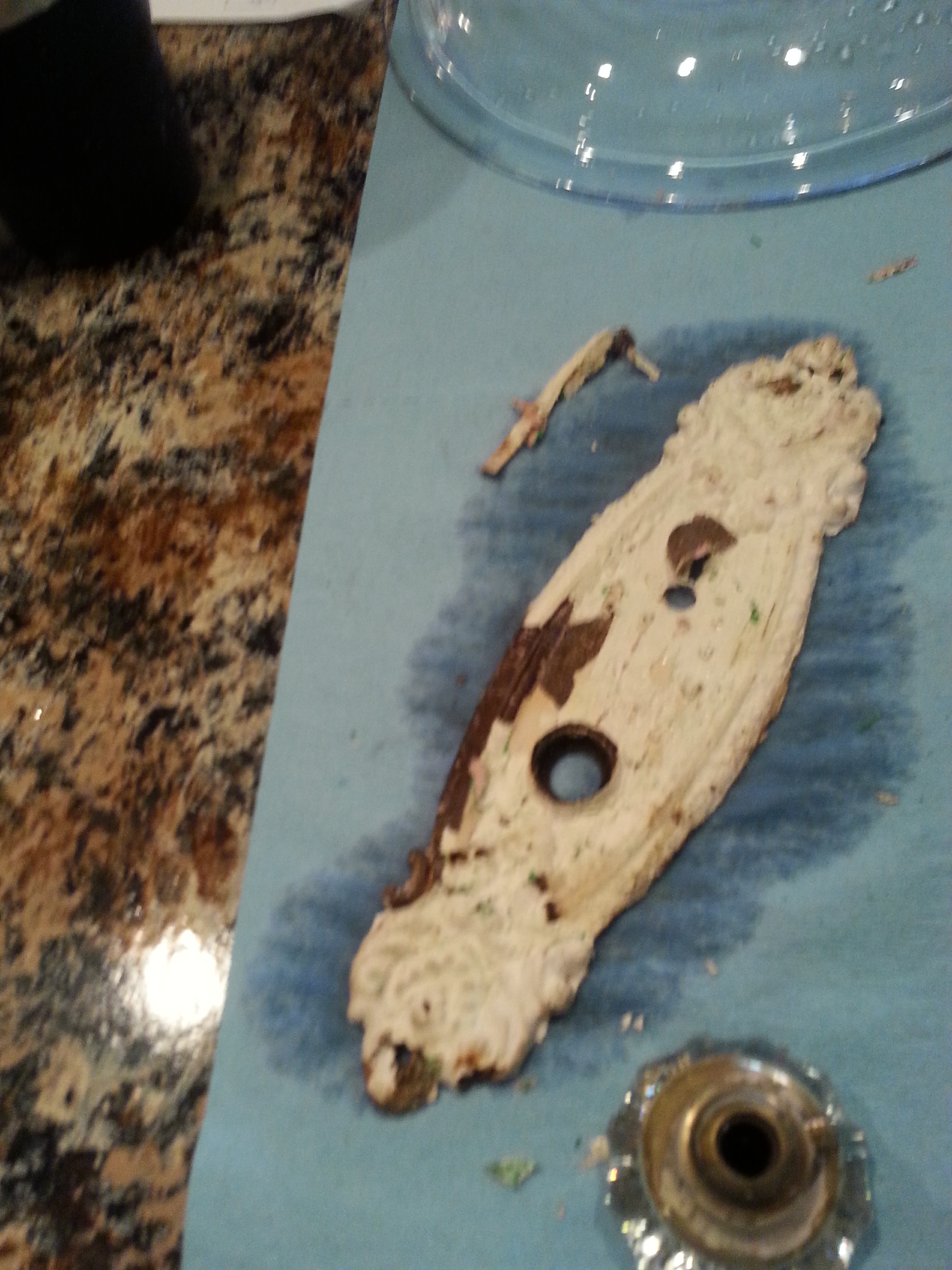 We also had quite the task in cleaning up the floor grates that we would be installing in all of the new heating and cooling vents. While every other room in our house has the original floor grates still intact, whatever was in the kitchen was long since gone. We did however find one reallyfreakingawesome wall grate downstairs in the basement. I could kick myself for not getting a before picture but there you have it. Trust me, it was the filthiest thing you ever saw. We could tell there was definitely some kind of filigree pattern and some writing on the front of the grate but years of dust and grime made it unreadable. We also scored one more grate at The Woodshack downtown for about $40 bucks. It was covered in paint but I knew it would be beautiful once we cleaned it up.